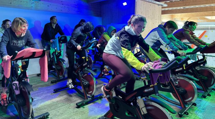 Cours d’endurance musculaire pratiqué avec des poids, step et barres.
